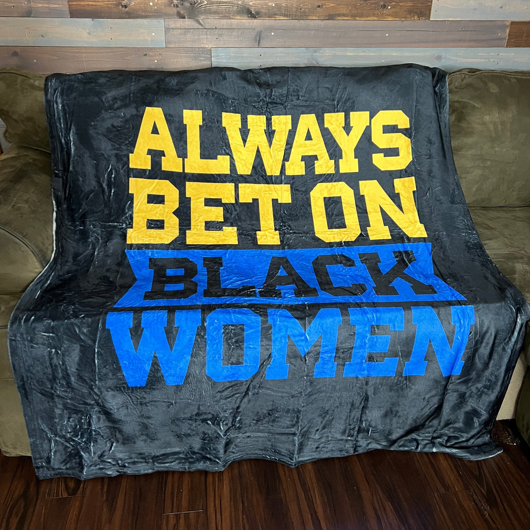 Black women have been breaking barriers, shattering ceilings, and defying the odds for centuries. This Always Bet on Black Women throw blanket is a statement of support and solidarity with other Black women. It's a call to action to recognize and appreciate the invaluable contributions that Black women make to society. It's a challenge to always bet on our ability to succeed, to make a difference, and to change the world.