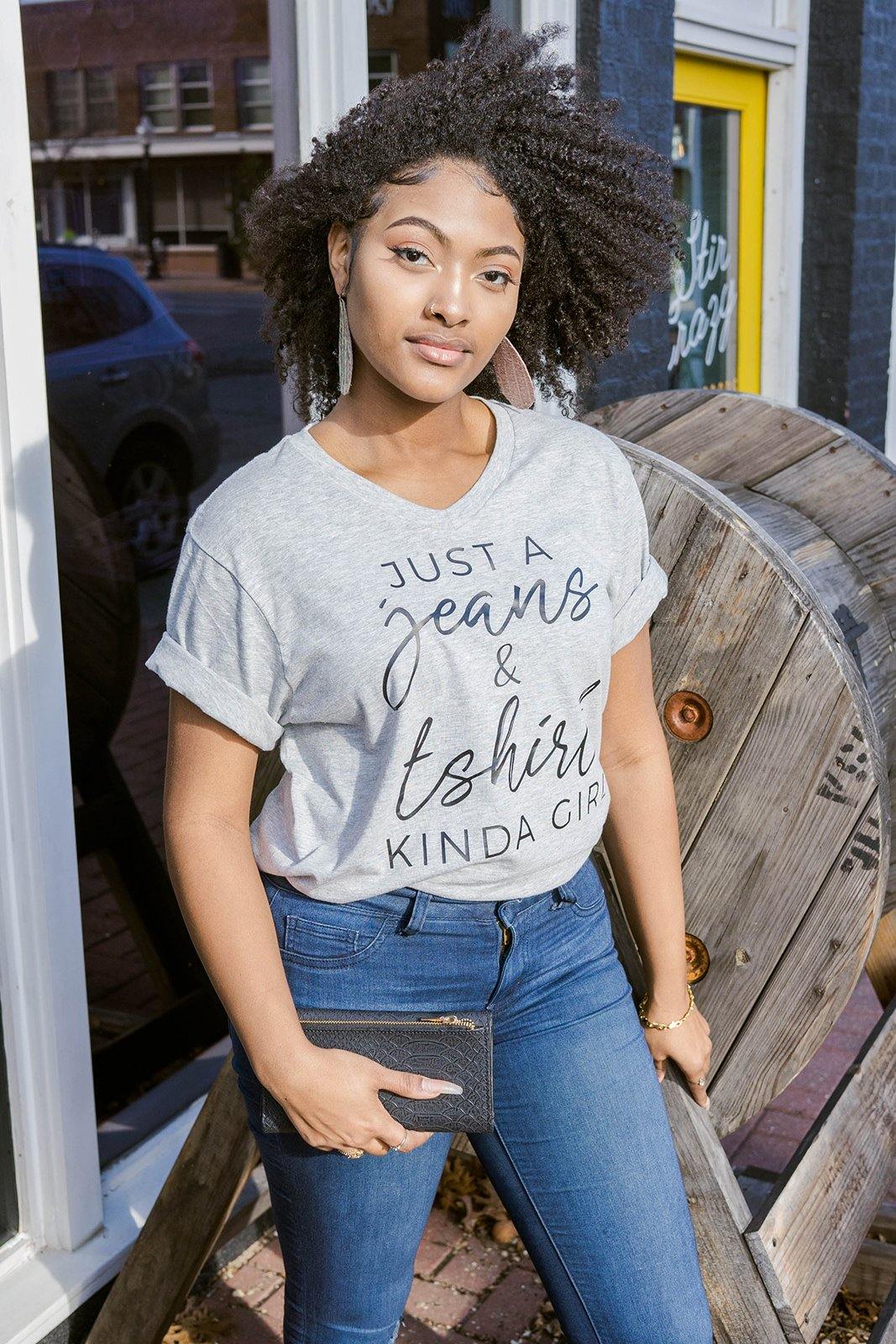 If the Just a Jeans & T-Shirt Kind of Girl Tee speaks to you, sis, ADD TO CART!