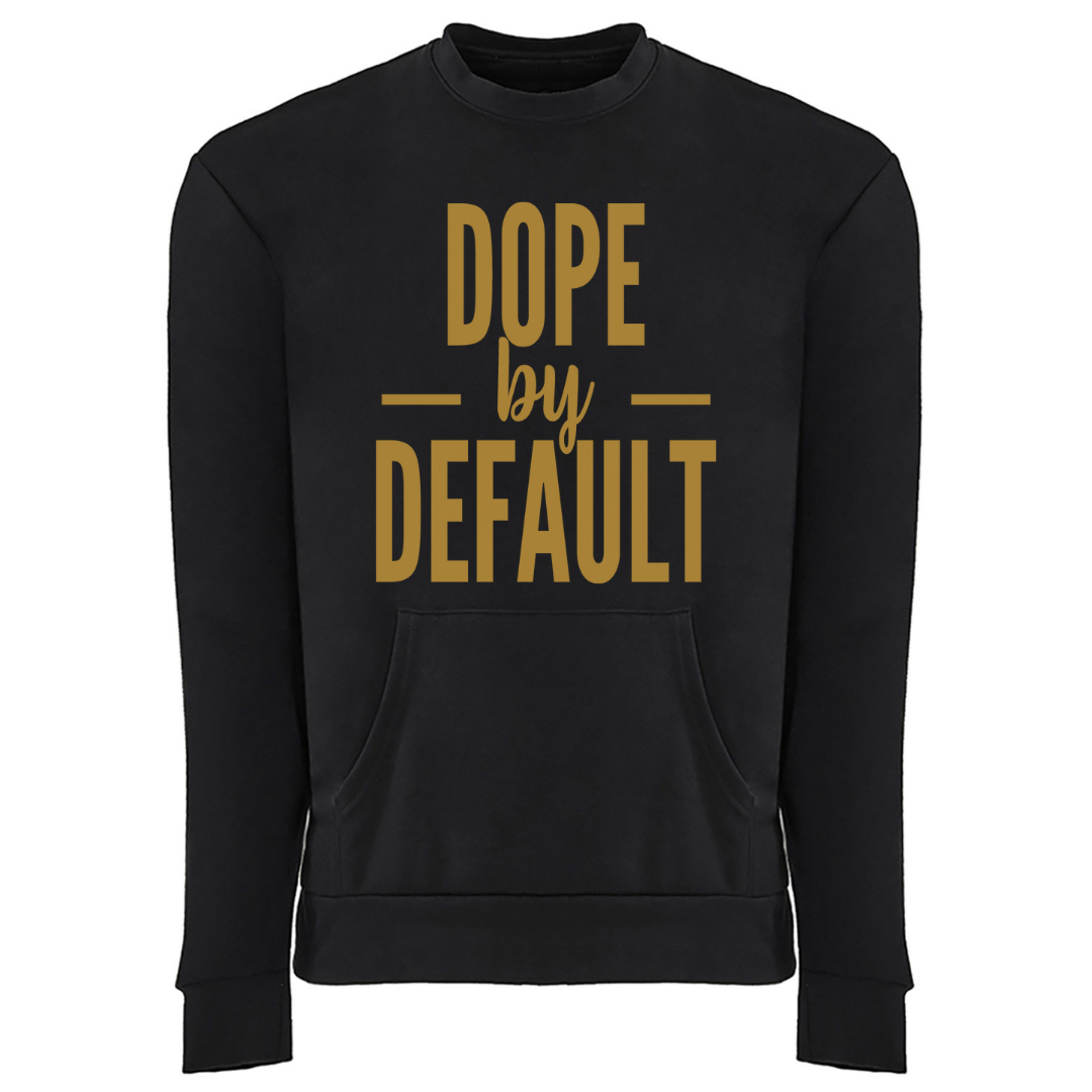When you wake up, and your dopeness is automatically turned on, you're Dope by Default! Let 'em know with this black and metallic gold (shimmer) pocket sweatshirt. Yes! It's a sweatshirt with pockets and no hood!